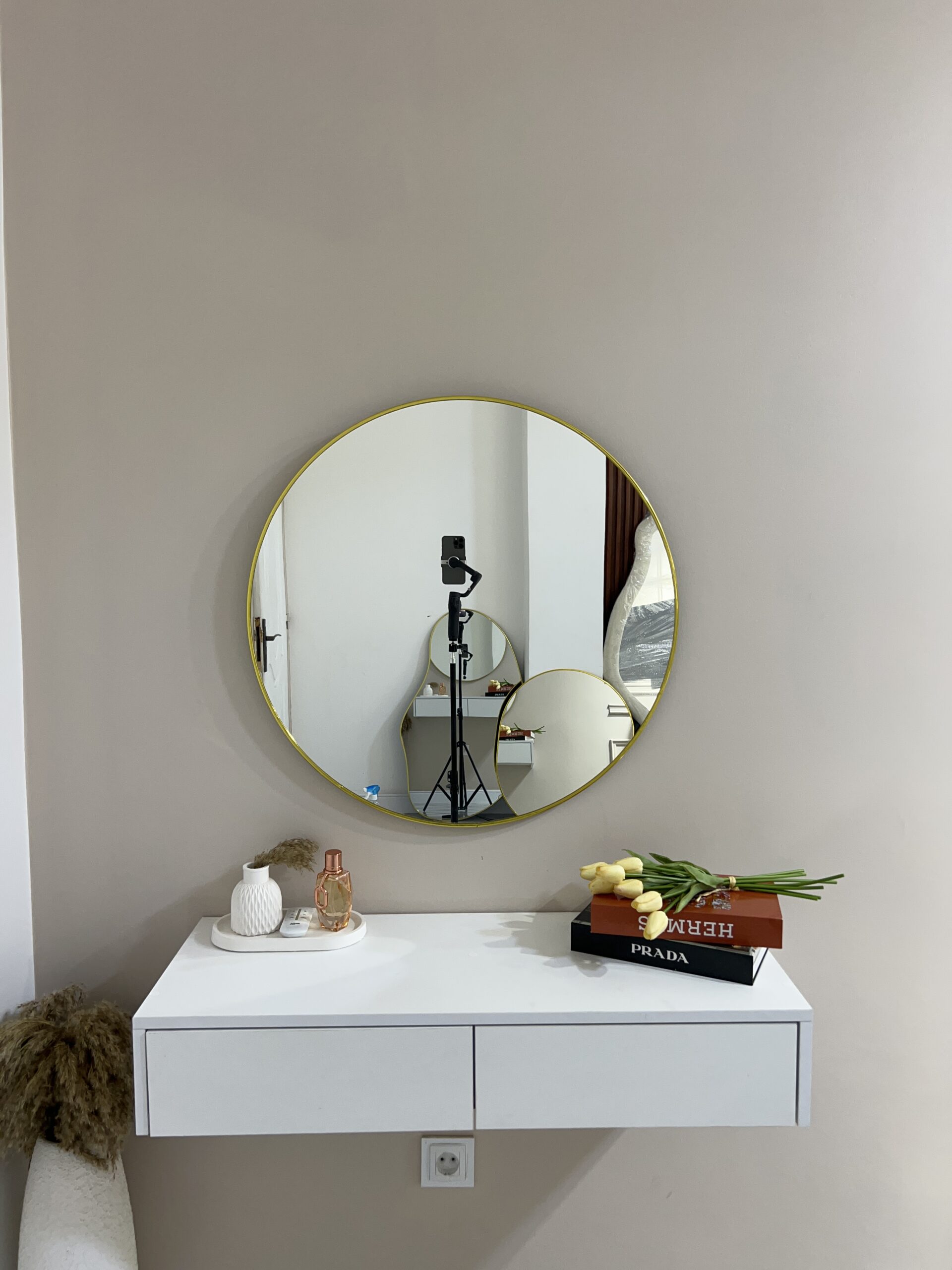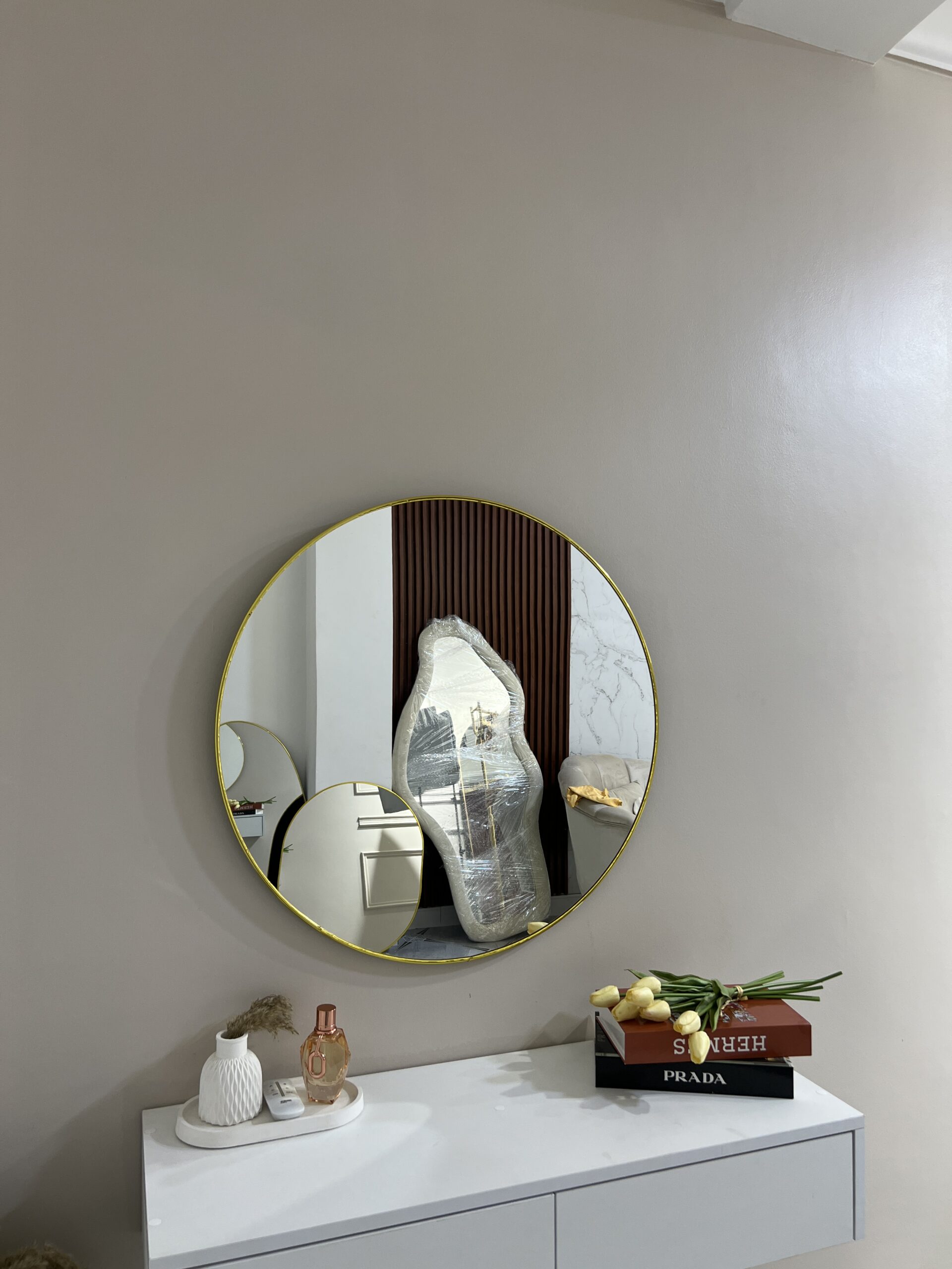 Apportez élégance et harmonie à votre intérieur avec ce miroir rond, un classique moderne qui illumine et agrandit visuellement l’espace.